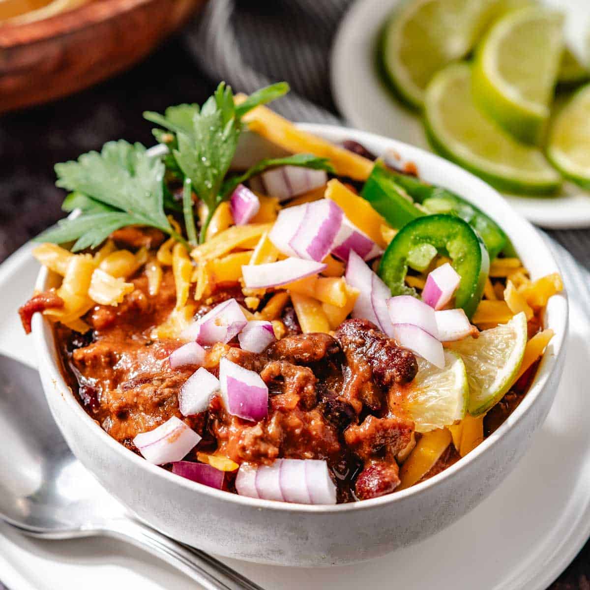 This instant pot beef and bean chili is a big pot of flavor! Its ready in under an hour and it makes the perfect meal for a cozy weeknight dinner or a hearty game day feast.