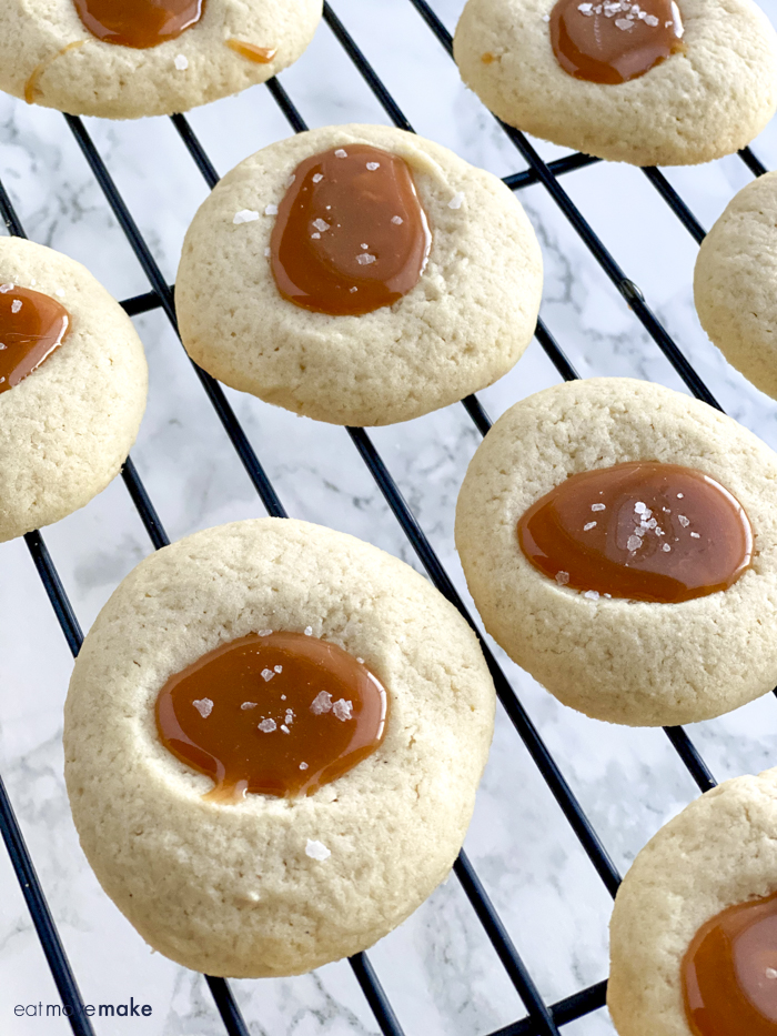Salted caramel thumbprint cookies are delectable treats that feature a