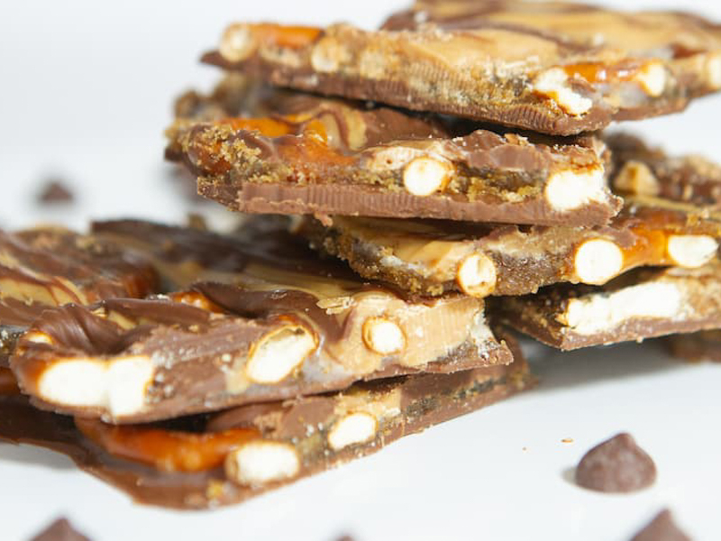 No Bake Caramel Pretzel Crack Bars using Reese’s peanut butter chips and pretzel twists.