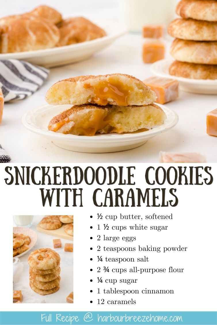 Take the classic all-time favorite snickerdoodle cookies recipe to a whole new ooey gooey level with yummy soft caramel bits.These chewy cookies are made without cream of tartar, so chances are, you probably have everything you need in your cupboard – except the caramels. Pick up a package of them and you’re all set to make this melt in your mouth delicious sugar cookie recipe!