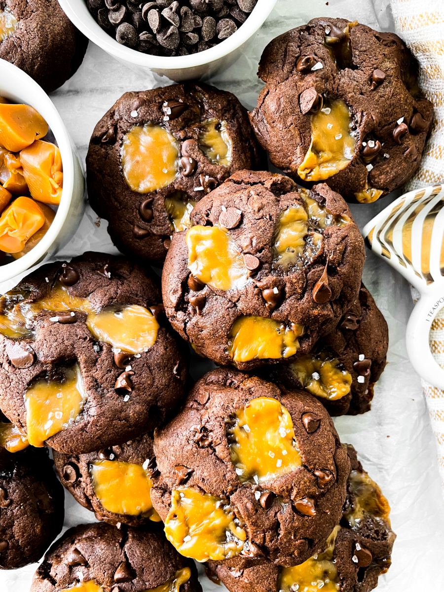 soft Batch Caramel Chip Chocolate Fudge Cookies is an easy chocolate cookie